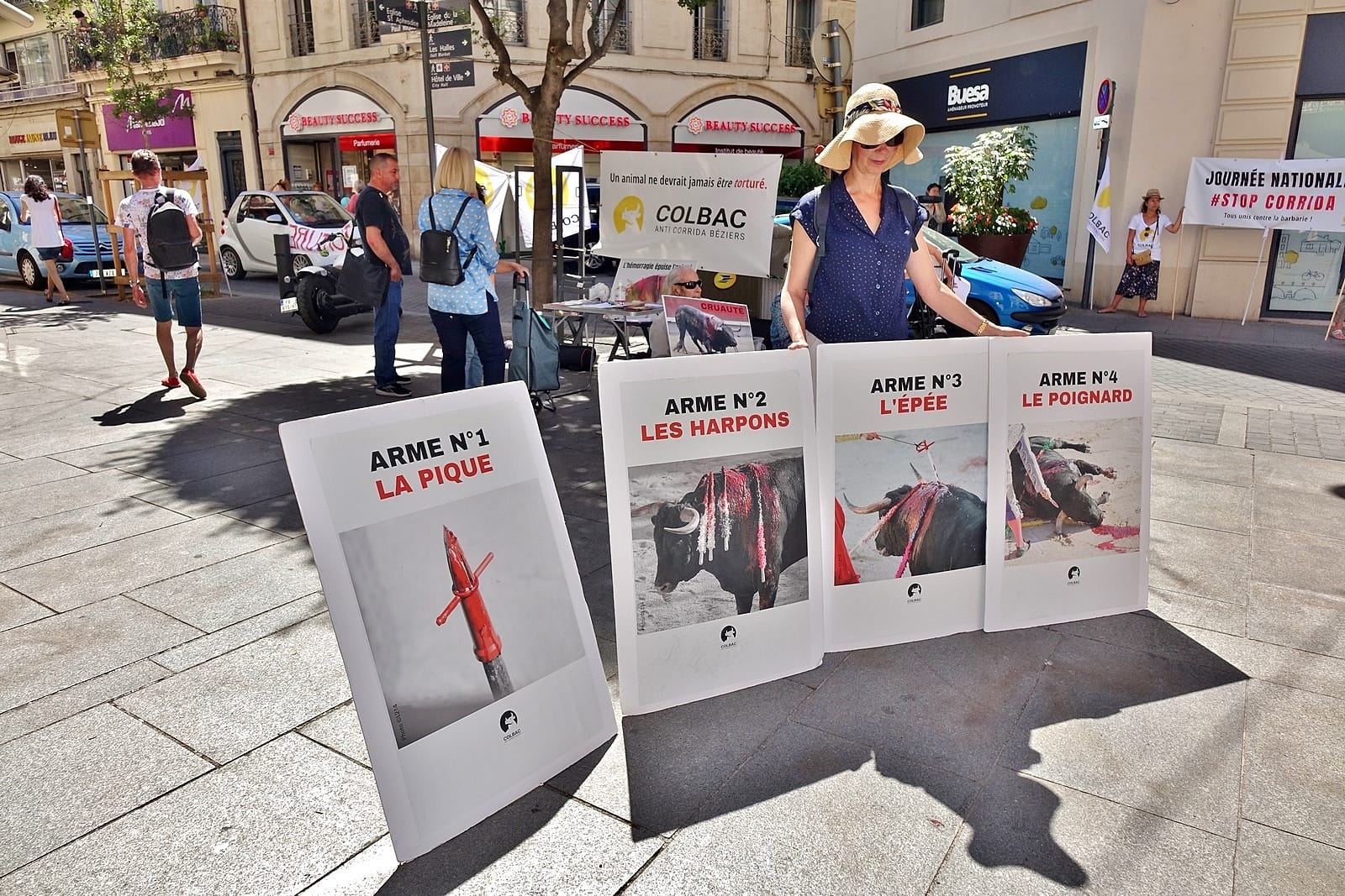 À l’occasion de la première Journée nationale contre la corrida qui a eu lieu samedi 11 juin dans une trentaine de villes en France, le Colbac a manifesté, rue de la République à Béziers.