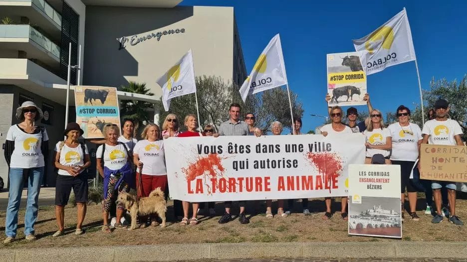 Samedi 7 octobre, les militants du COLBAC se sont rassemblés sur le rond-point Youri Gagarine, avenue du Président Wilson, à Béziers, pour mener une action de sensibilisation contre la corrida. L’objectif de cette nouvelle action rond-point était d’attirer l’attention des Biterrois sur la cruauté des corridas.