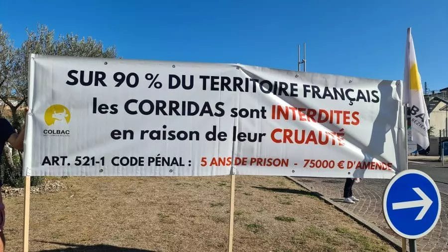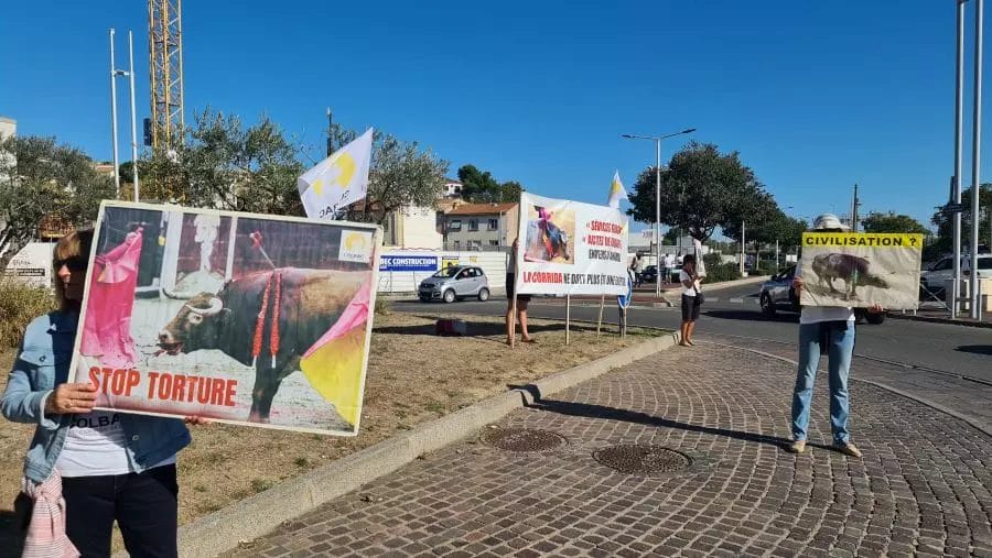 Aux entrées du rond-point, des panneaux indiquaient « Stop Corrida, klaxonnez si vous êtes d’accord ». De très nombreux automobilistes ont klaxonné en signe de soutien ! Cela démontre clairement que la majorité des habitants de Béziers sont opposés à la corrida et souhaitent son abolition.