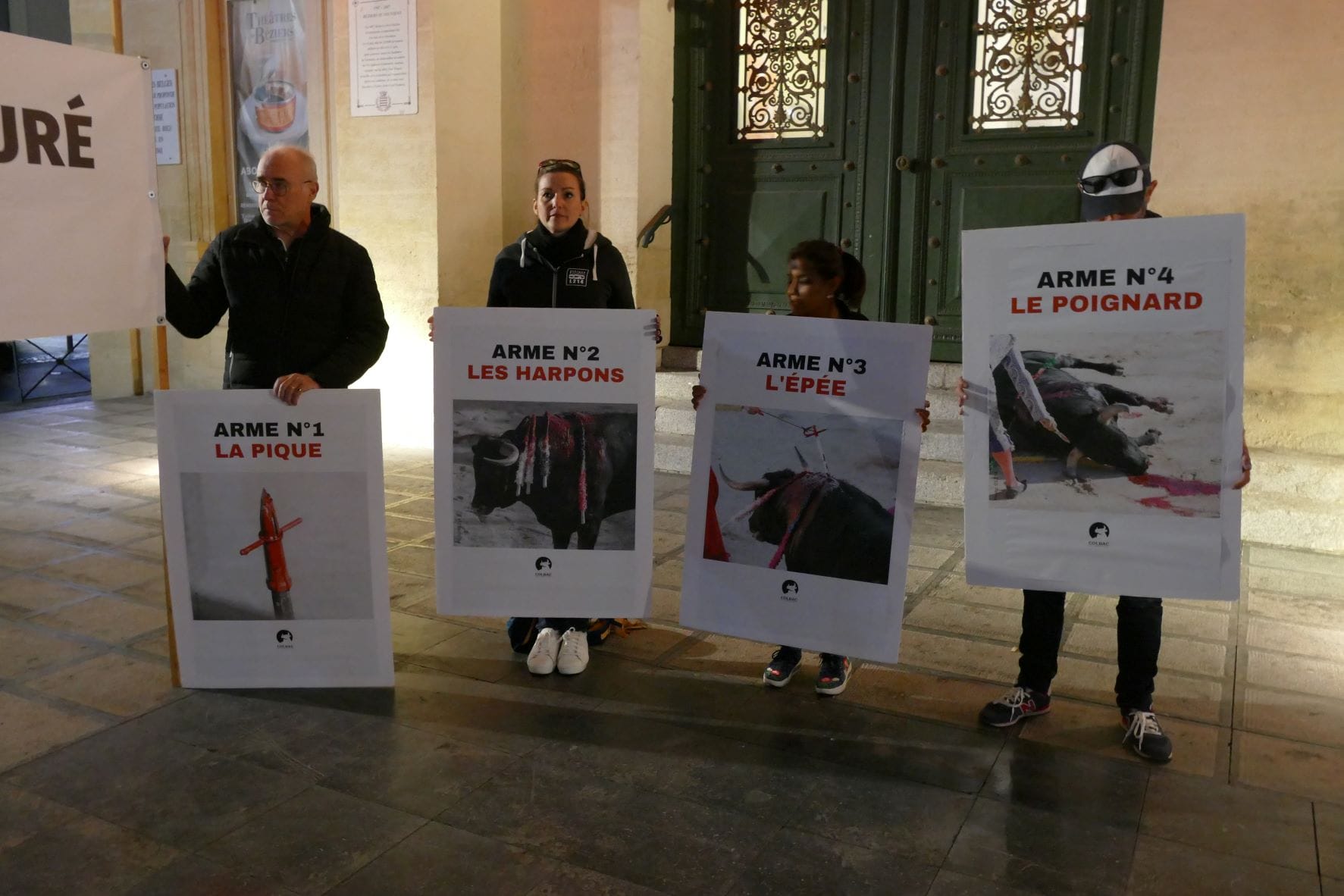 Cette manifestation déclarée le 12 octobre, avait été initialement interdite par un arrêté préfectoral en date du 15 octobre, à la demande de la municipalité et de la Fédération des Clubs Taurins du Biterrois (l’arrêté interdisait toute manifestation ou rassemblement dans un périmètre de 300 mètres autour du Théâtre).