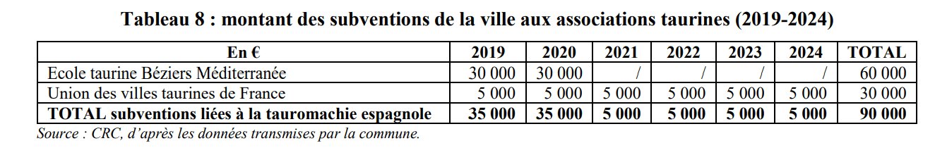 Entre 2019 et 2023, la Ville de Béziers a versé 15 000 € de subvention annuelle à la Fédération des clubs taurins du Biterrois (FCTB), principal financeur de cette structure.