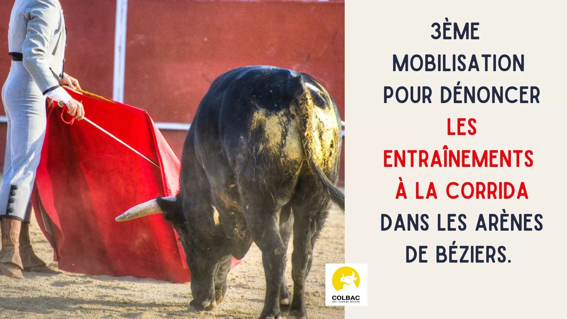 Nous manifestons pour dénoncer l’entraînement à la corrida dans les arènes de Béziers.