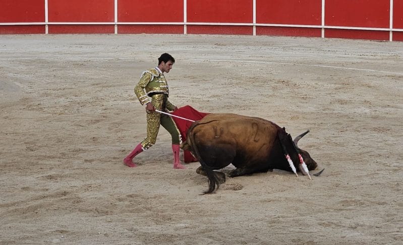 Allons donc : un duel n’oppose que 2 combattants. Or dans l’arène un taureau doit affronter 6 hommes à la fois : 2 picadors, 3 peones et le matador. Six hommes longuement entraînés alors que le taureau n’a jamais bénéficié du moindre entraînement aux combats de l’arène. Ajoutez les nombreuses fraudes commises pour affaiblir l’animal : cornes sciées, drogues, suralimentation, coups de barrière, pique enfoncée tout contre la colonne vertébrale, etc.