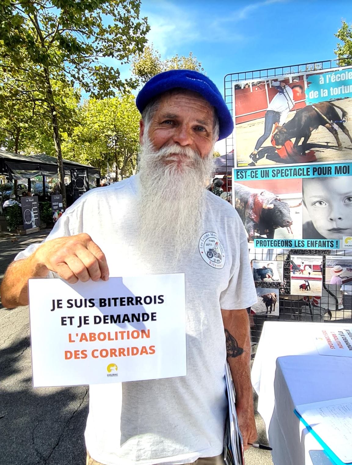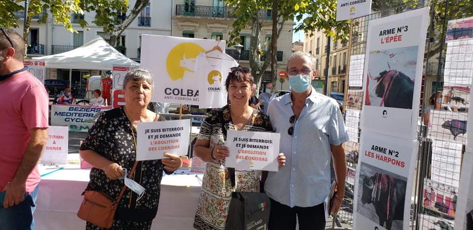 C’est un rendez-vous important qui nous permet d’informer les Biterrois et les Biterroises de nos actions contre la corrida. Nous récoltons de très nombreux soutiens et encouragements. La majorité des personnes qui s’arrêtent sur le stand sont déjà sensibilisées et fortement opposées aux corridas. Elles se demandent comment une pratique aussi barbare peut encore perdurer en France et être autorisée à Béziers. D’autres sont interpelées par les photos explicites que nous montrons et viennent chercher de l’information.