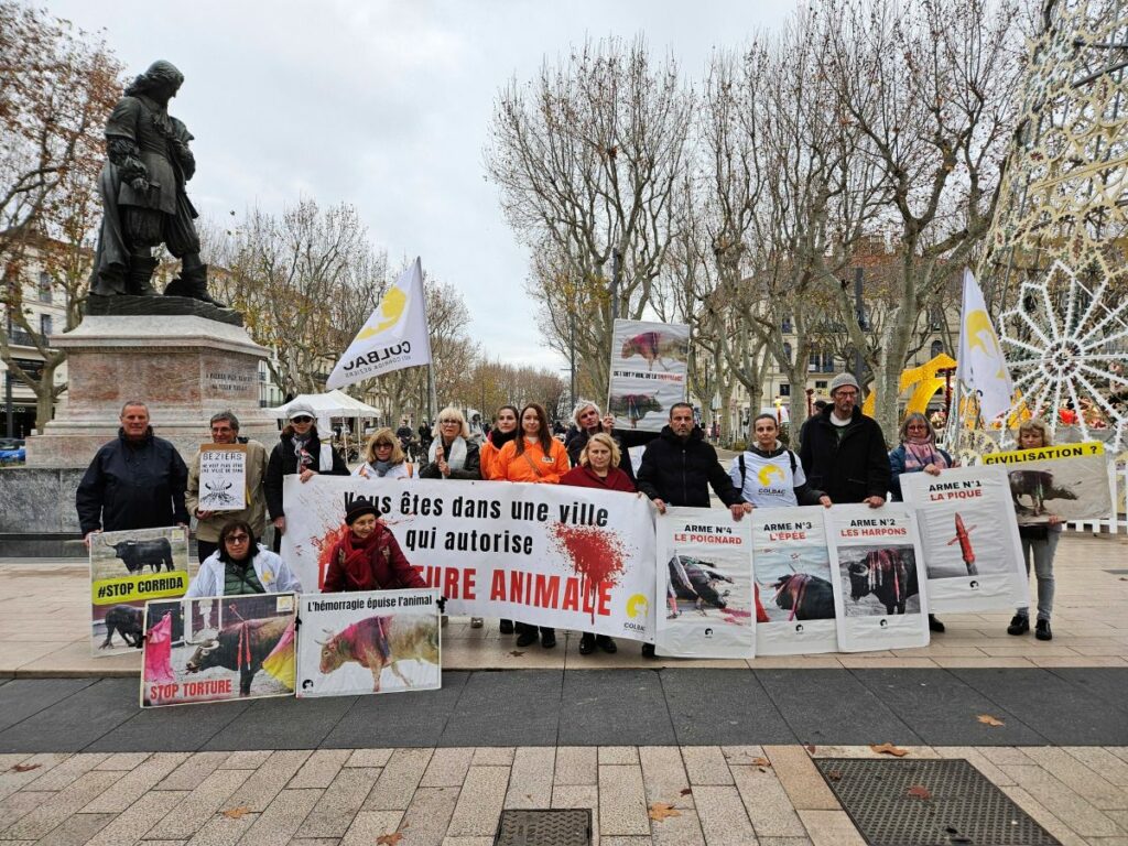 Si nos manifestations dérangent la sous-prefecture et la municipalité de Béziers, ce n’est évidemment pas parce qu’elles menacent l’ordre public, mais parce qu’elles rendent visible la réalité de la cruauté de la corrida, permise, financée et promue à Béziers par le maire.