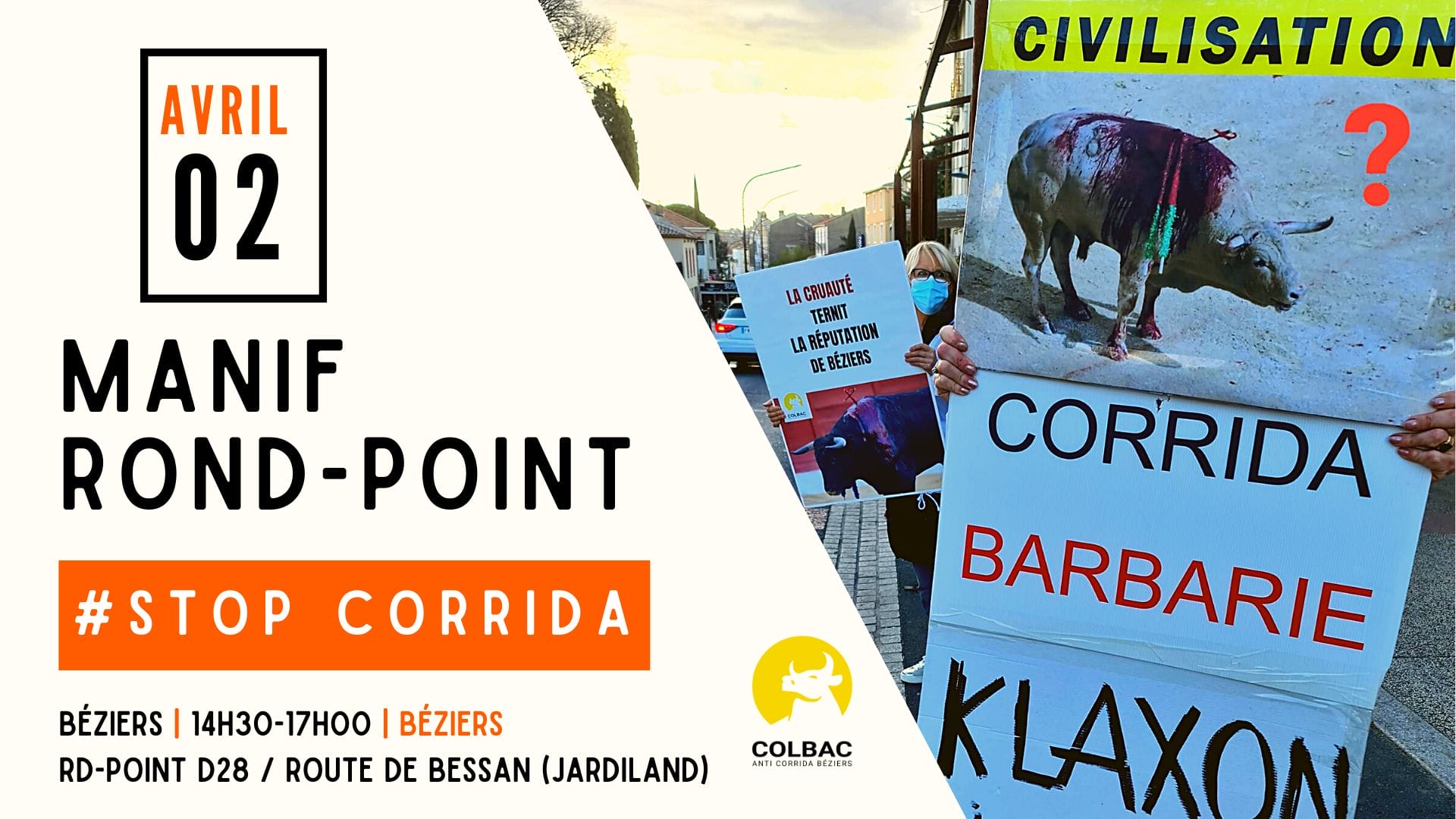 Samedi 2 avril, nous nous sommes mobilisés une nouvelle fois pour attirer l’attention de la population biterroise sur la barbarie de la corrida.