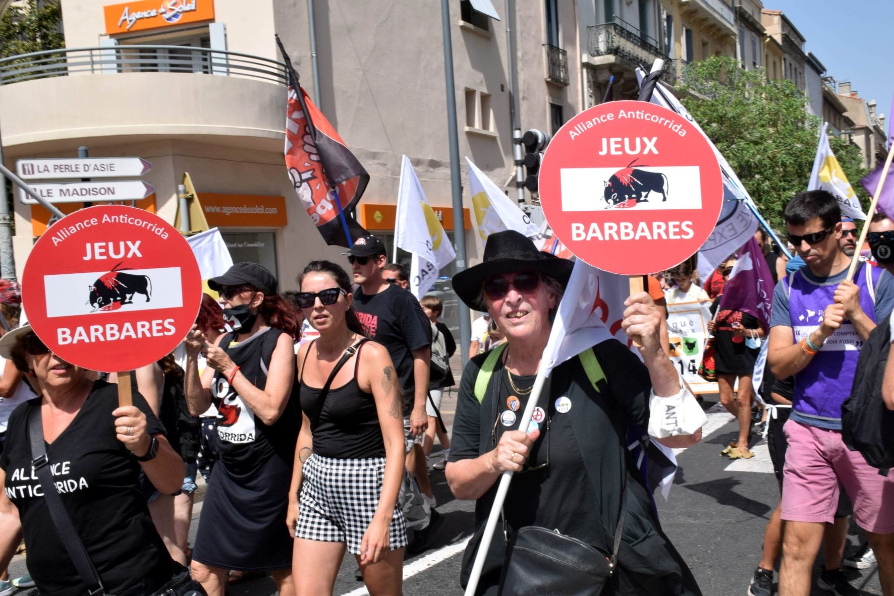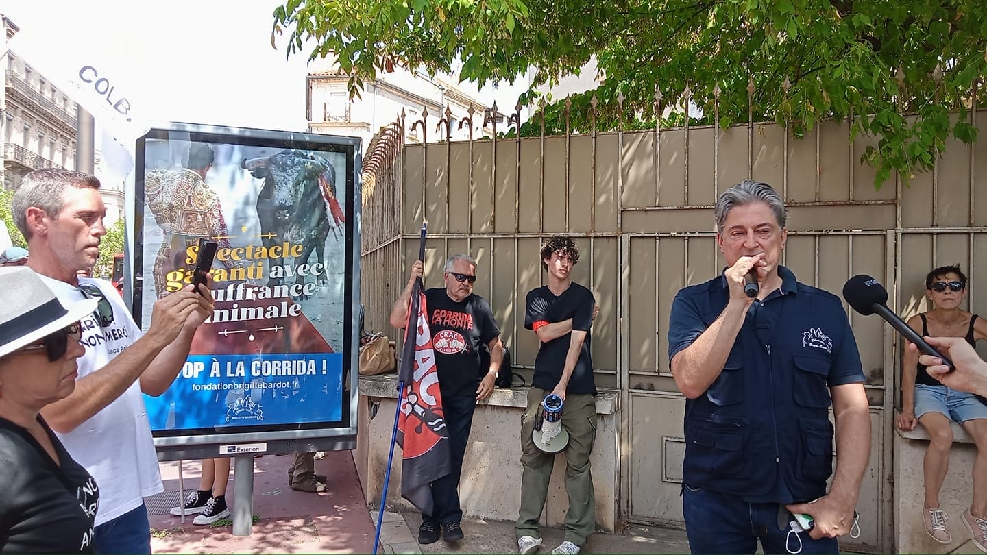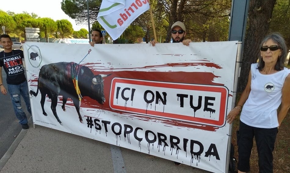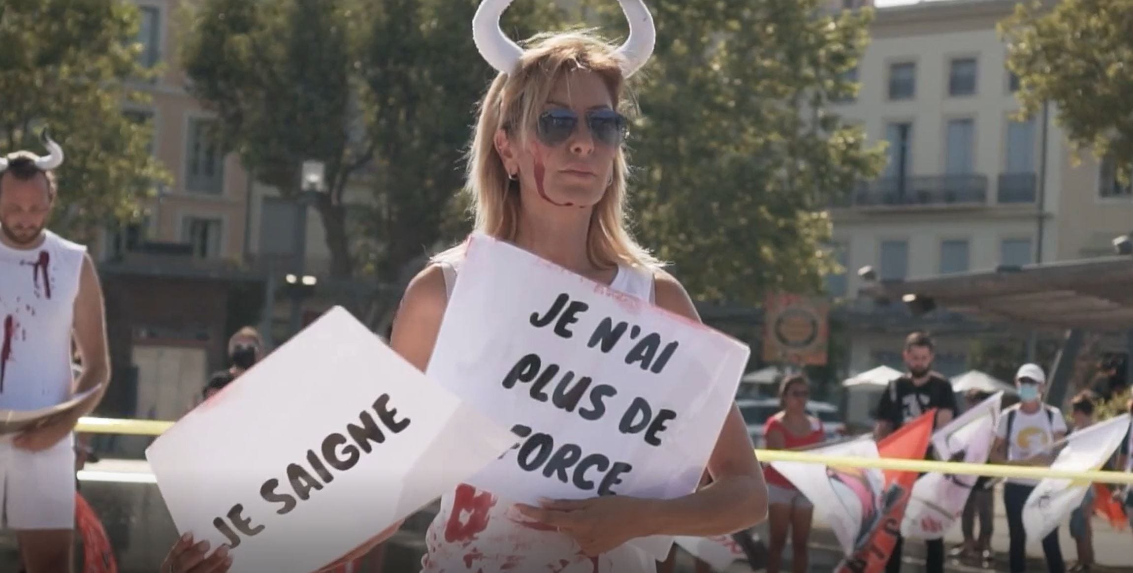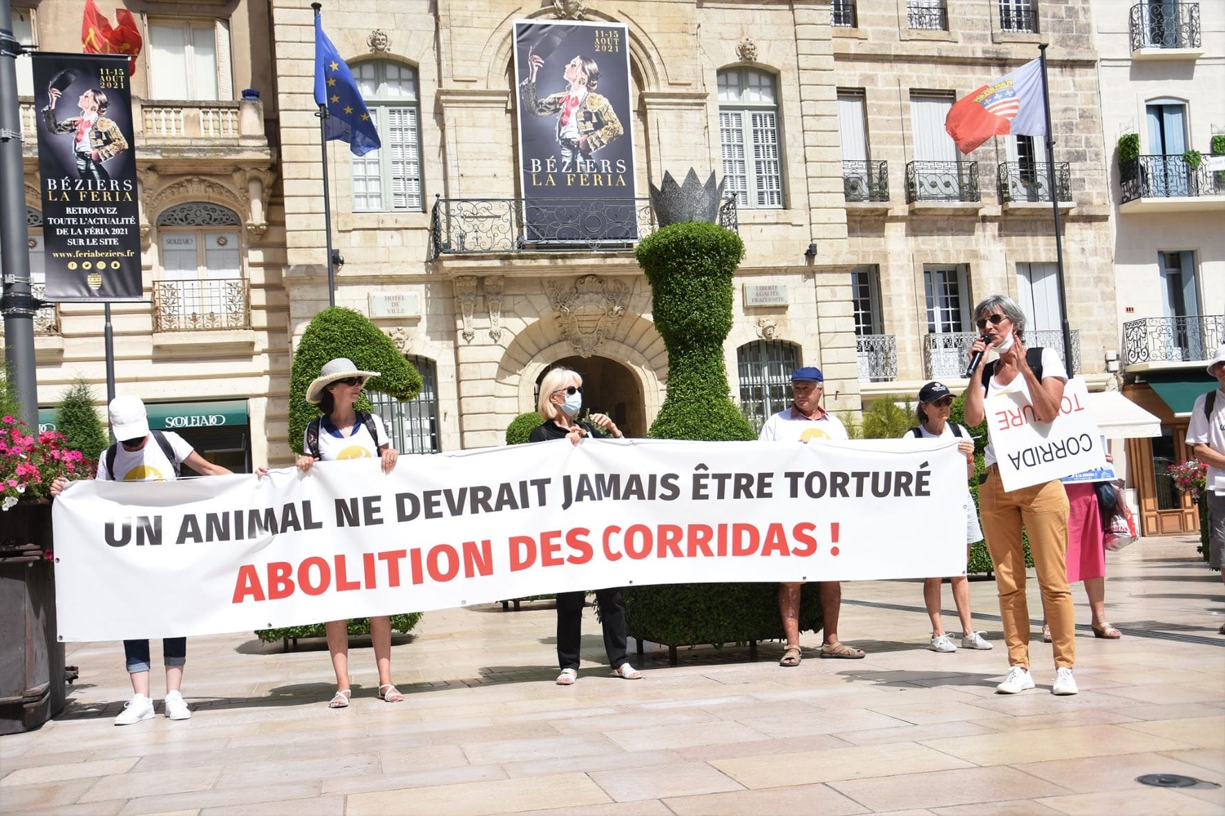 12/08/21 Occitanie Tribune Le Colbac manifeste contre les corridas organisées à Béziers