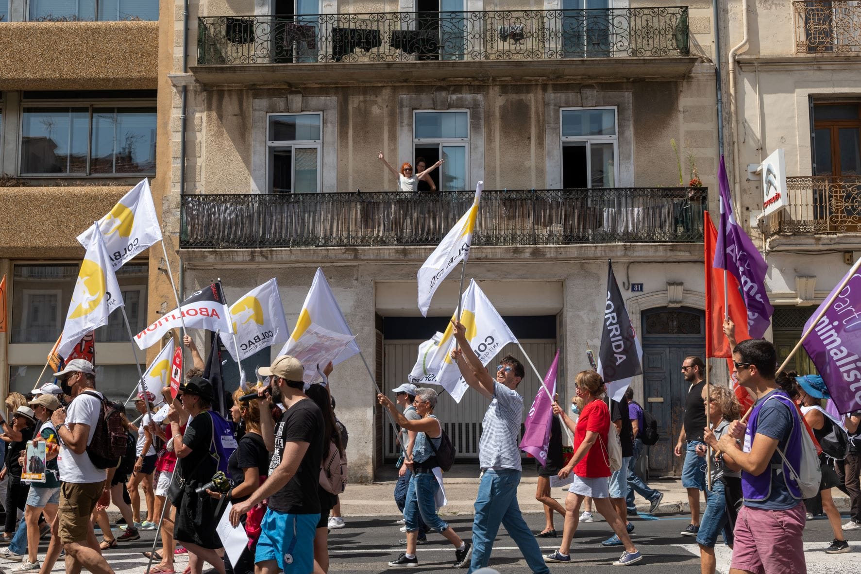 Le rendez-vous était donné au Parc de la Gare du Nord et s’est prolongé jusqu’à 14h00 pour attendre les militant.e.s retardé.e.s sur l’A9 surchargée. Pique-nique, échanges, photos, interviews, consignes …Le top départ de la marche a été enfin lancé par le célèbre rapeur Res Turner qui, pour le plus grand plaisir des militant.e.s présent.e.s, a interprété son nouveau titre Corrida Basta (clip officiel) . Ambiance !