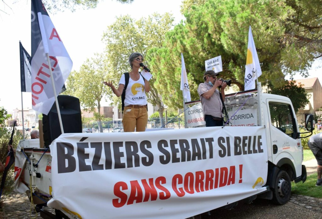 12/08/21 Occitanie Tribune Le Colbac manifeste contre les corridas organisées à Béziers