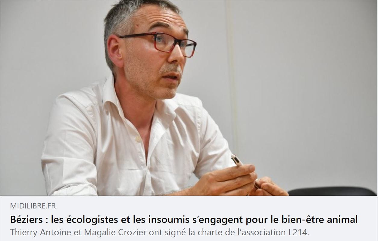 A Béziers, les Écologistes Europe Écologie Les Verts – Groupe du Biterrois et les Insoumis – Les Insoumis du biterrois s’engagent pour le bien être animal.
