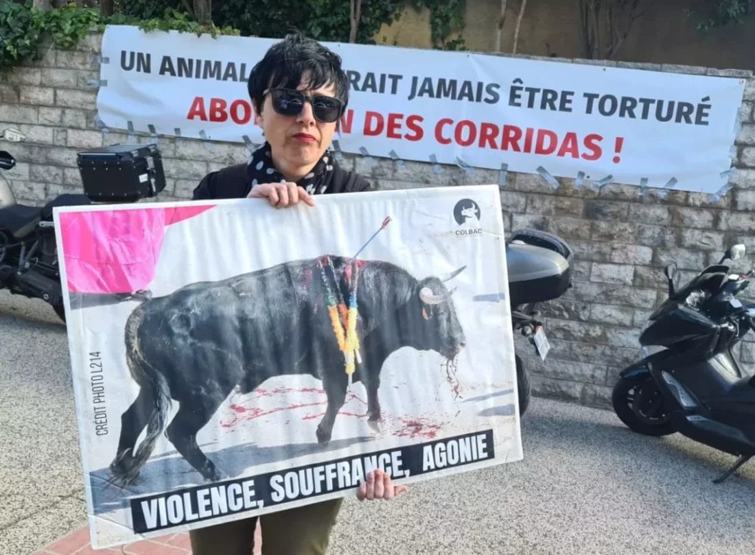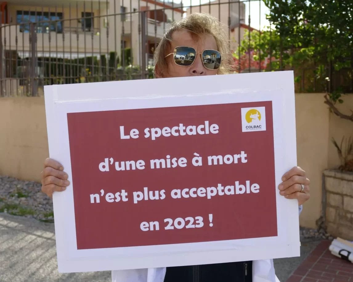 Alors que les spectateurs se rendaient aux arènes, le COLBAC a interrogé les consciences : quels êtres humains sommes-nous pour accepter que l’on fasse souffrir un animal pour nous divertir ?