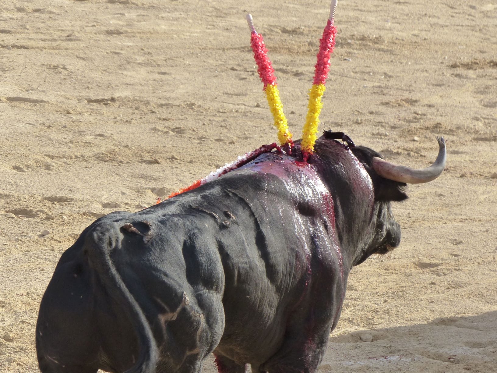La souffrance commence avec les picadors, cavaliers armés d’une longue lance, la pique. Sous le poids de l’homme, la pointe creuse dans l’échine de l’animal des trous dont la profondeur peut aller jusqu’à 30 centimètres. Et cela, tout contre la colonne vertébrale, organe extrêmement sensible.