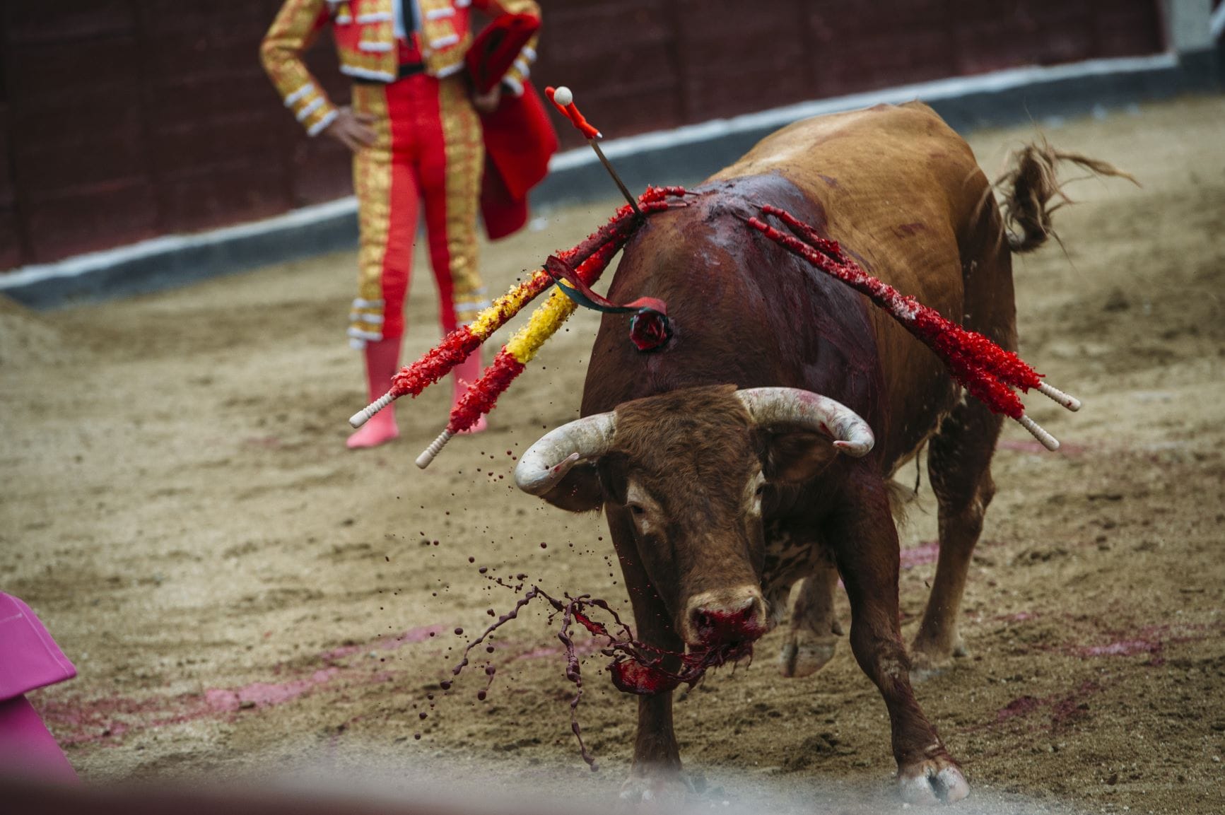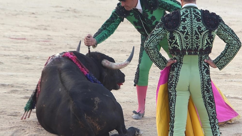 Le taureau paralysé, va être conscient encore quelques minutes. Plusieurs minutes passent avant qu’un taureau poignardé ne meure.