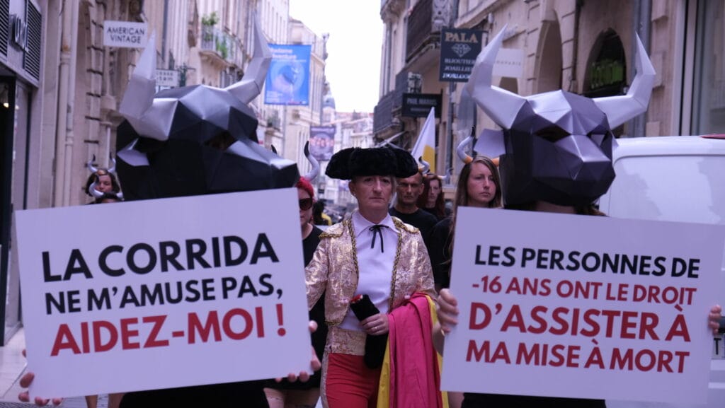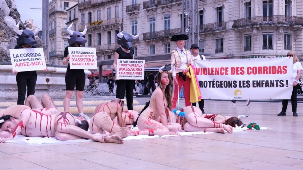 – Organisation d’un happening très impactant à Montpellier en collaboration avec Lush, visant à dénoncer la barbarie tauromachique et l’exposition des mineurs à la violence des corridas.