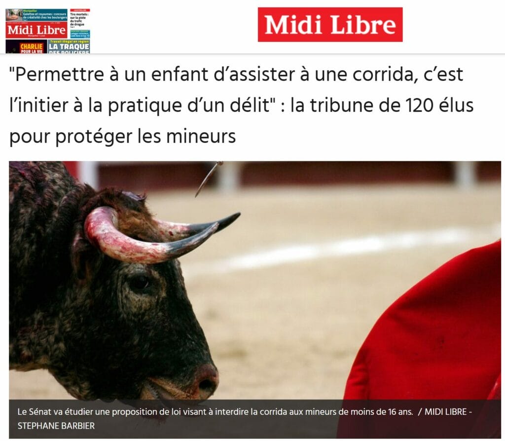 ■ Le COLBAC a initié, rédigé et mobilisé 120 élus autour d’une tribune publiée dans le Midi Libre « 120 élus appellent à protéger les mineurs de la violence des corridas ».