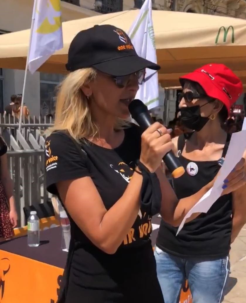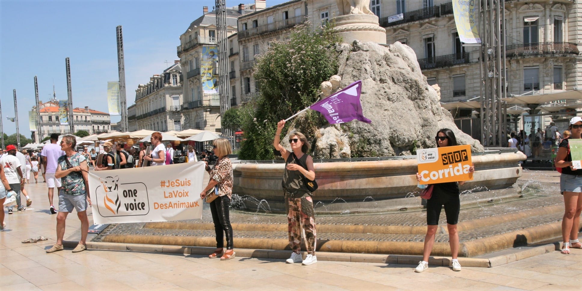 Pour One Voice : « La cruauté n’est pas une tradition tolérable. Par notre présence, nous demandons l’interdiction de tuer ou même de blesser un taureau, et nous exigeons la fin de l’exception qui autorise la corrida ». Dans chaque ville, les militants One Voice ont lu un texte poignant.