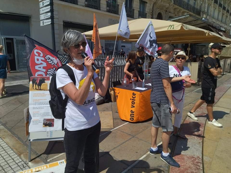 Au cours de la manifestation qui a informé les passants avec des tracts et des panneaux, Sophie Maffre-Baugé a rappelé : « La corrida est interdite en France en raison de sa cruauté, sauf dans 12 départements où elle est autorisée au nom de la tradition. Pourtant, la tradition ne supprime pas la sensibilité des taureaux à la douleur ; ce qui est cruel dans une ville non taurine, l’est tout autant dans une ville dite taurine ! La corrida doit être interdite partout en France ».