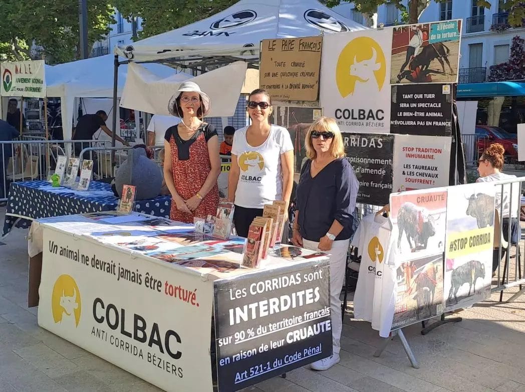 Les membres de l’association ont échangé avec de nombreux visiteurs curieux de connaître les dernières actualités de la lutte anticorrida. Ils ont reçu un accueil chaleureux de la part de ces visiteurs qui se sont montrés intéressés par les actions du COLBAC. La plupart ont signé avec enthousiasme la pétition demandant l’arrêt des corridas à Béziers.