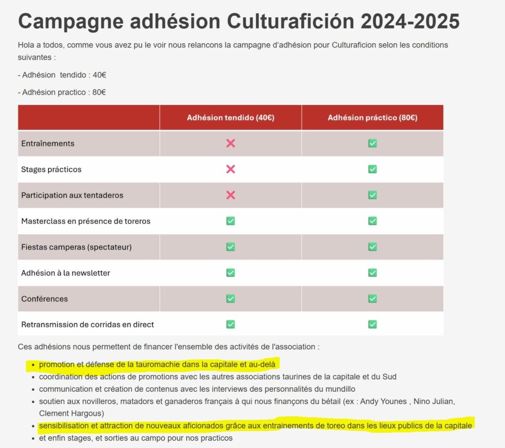 À travers ces activités de « toreo de salon » dans les arènes de Lutèce, Culturaficion enseigne les gestes de la corrida à des Parisiens et forme des « aficionados prácticos » en vue de stages pratiques dans les élevages du sud de la France et en Espagne, où de jeunes animaux seront toréés « pour de vrai ».